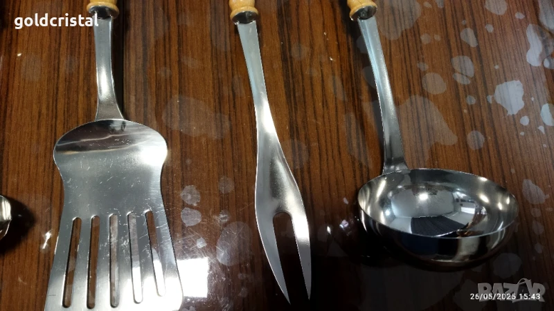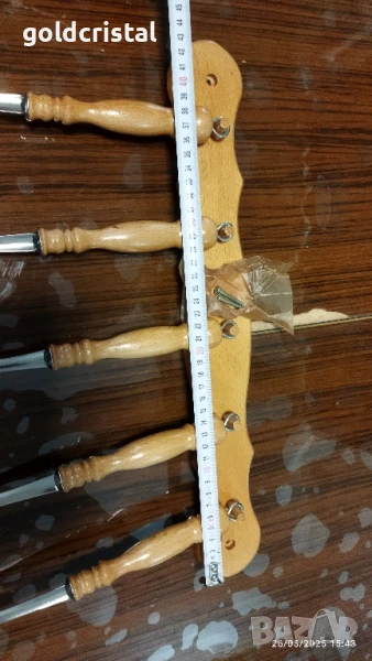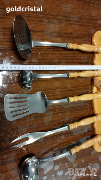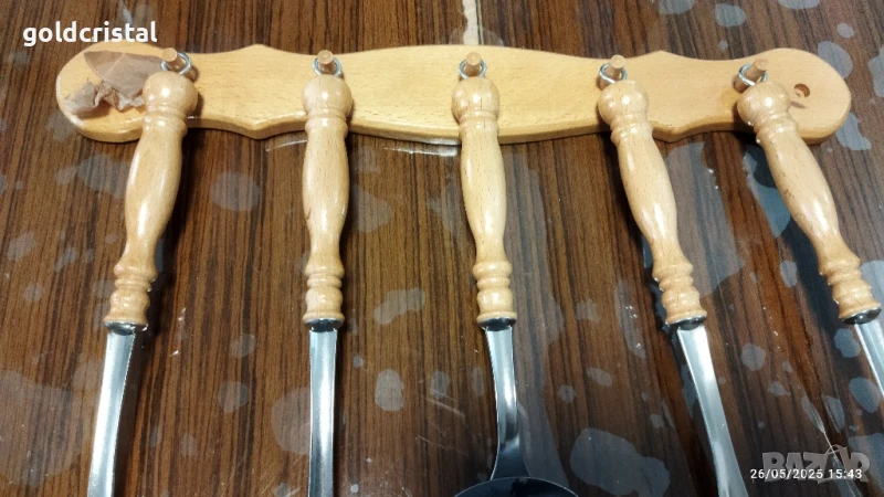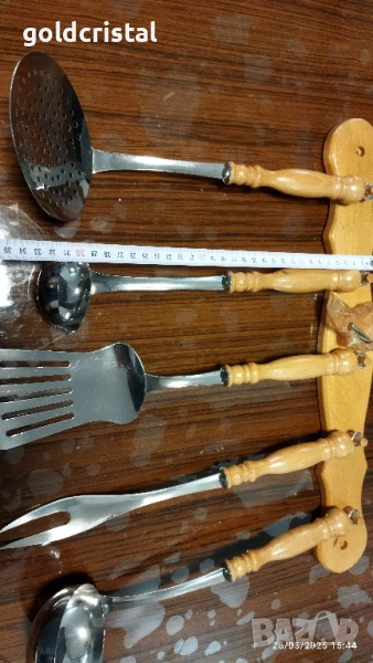 ретро руски прибори за готвене неизползвани с дървени дръжки и дървена закачалка в кутия сервиз комплект сет лот ретро арт декор винтидж колекция стари старинни антикварни предмети обзавеждане за дома и семейството подходящи за подарък за ценители и колекционери
