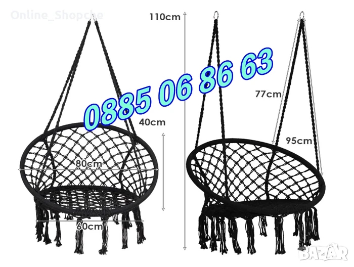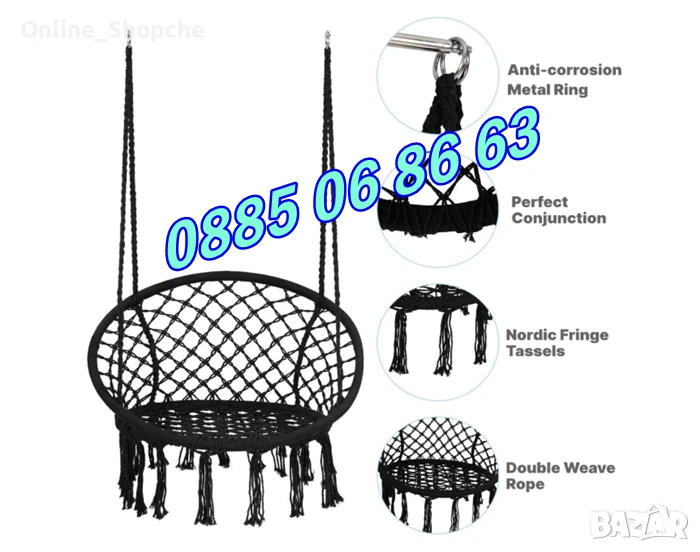- Висяща въжена люлка хамак /възглавници не са включени/