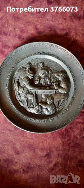 Красива тръба,свирка от Zinn и кожа с инкрустация на ловни мотиви .Внос от Германия.