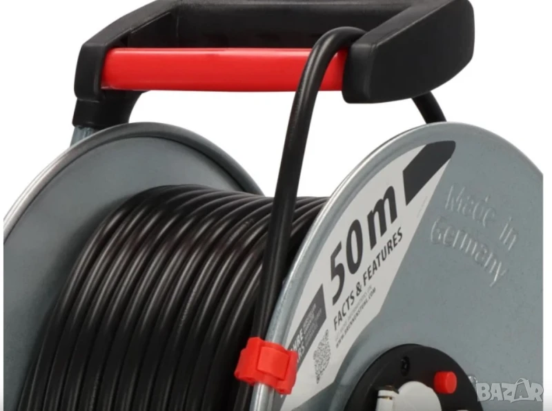 Ергономична дръжка за кабел за перфектно управление на кабела по време на навиване.