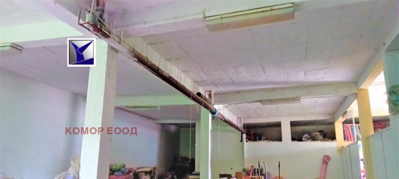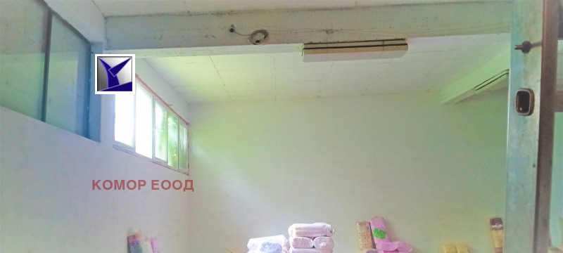 Вътрешно склада е разделен на просторно преддверие с офисна част към лицето на сградата / обзаведен, но по желание може да се разчисти/ представляващ две преходни помещения и склад - архив, санитарен възел и мивка с възможност за преграждане на малка кухничка към офисната част; с висок и широк PVC портал е отделена складова част състояща се от високо и просторно складово помещение с приток на естествена светлина, с полуетажи удобни за допълнително складиране, топла връзка към кухничката и магазина, няколко помещения също подходящи за допълнителни офиси, като едното е с втори изход на гърба на сградата към малък озеленен двор / удобно за пиене на кафе, зона за пушачи и други.