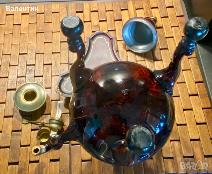 Старинна бульотка се продава като отделен артикул или като част от комплект. Не забравяйте да разгледате и други артикули от този комплект - #0015# Електрическа лампа и #0016# Комплект за чаено парти. Заедно всички тези артикули съставляват една много солидна, красива композиция.