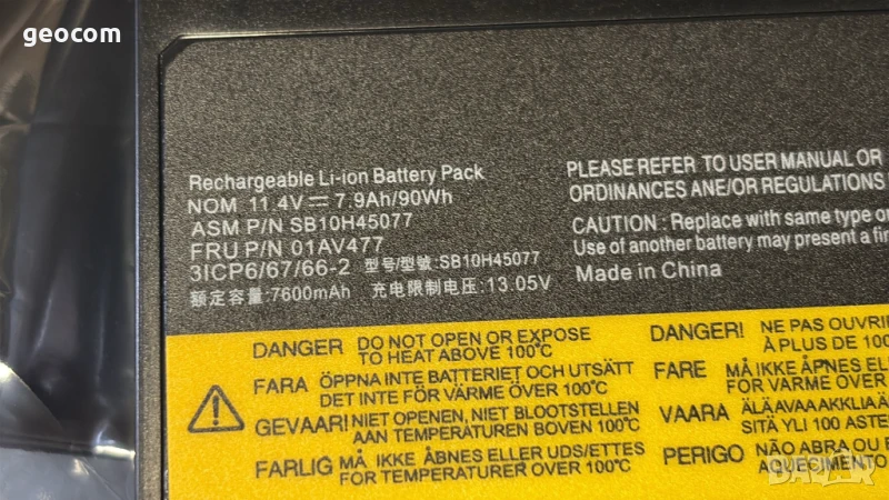 Напрежение: 11.4V, 90Wh. Lenovo FRU: 01AV477.