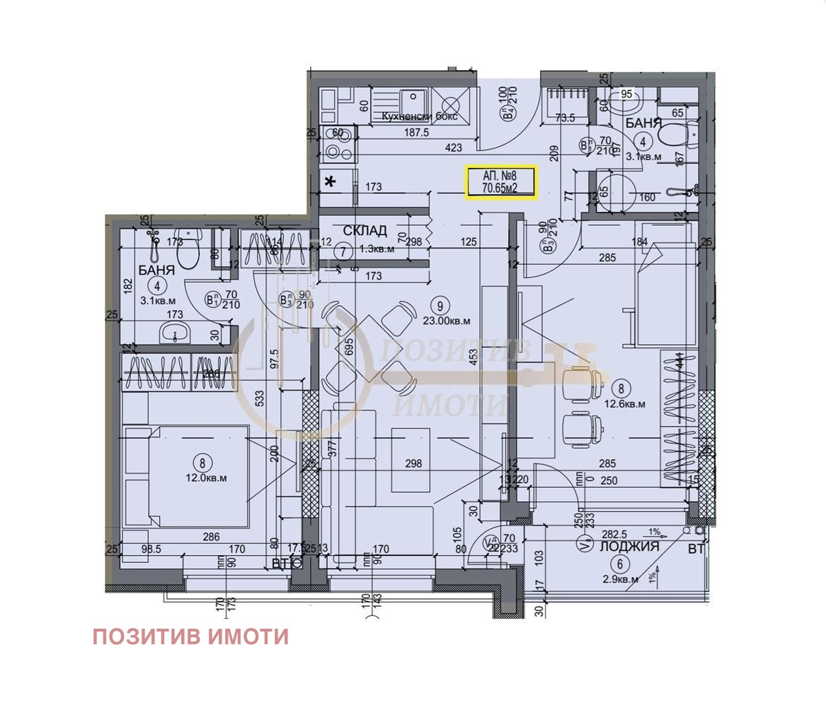 Агенция ПОЗИТИВ ИМОТИ предлага за продажба 3-стаен апартамент със застроена площ 70,65 кв.м. (90,42 кв.м. с общи части) на цена от 198 930 EUR с вкл. ДДС!