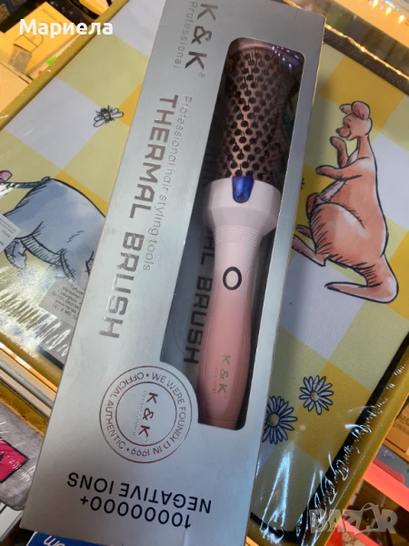K&K Ionic четката е снабдена със супер йонно генериране, за да елиминира статичното електричество и да укроти къдренето .