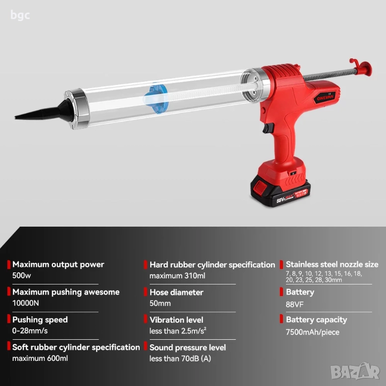 Нов Акумулаторен пистолет за силикон OneVan 18v Dual +2 БАТЕРИИ + ЗАРЯДНО Устройство + Пълен комплект накрайници!