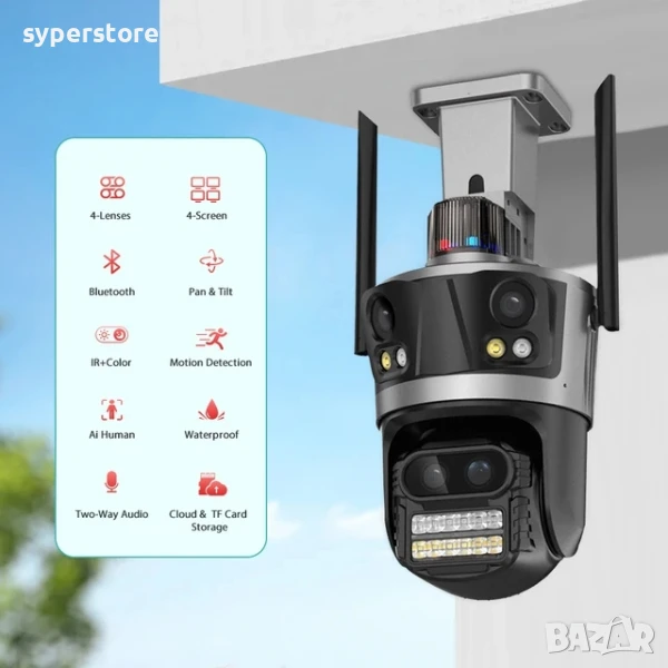 Камера за Видеонаблюдение безжична Digital One SP01087, 4 обектива, 16MP, wi-fi camera, IP камера, външен монтаж, автоматично проследяване