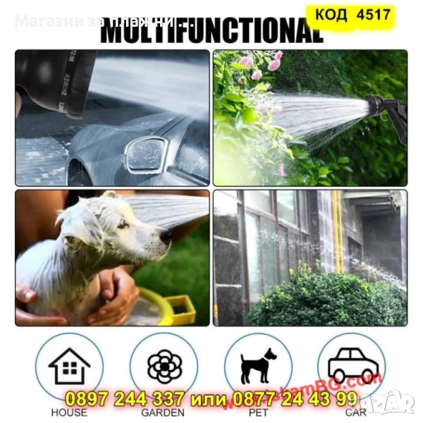 В комплекта ще откриете и бонус – регулируем пистолет за миене с метален корпус и въртяща се дюза. Подходящ както за поливане на цветя, така и за почистване на автомобил, този комплект е перфектното решение за всеки двор.