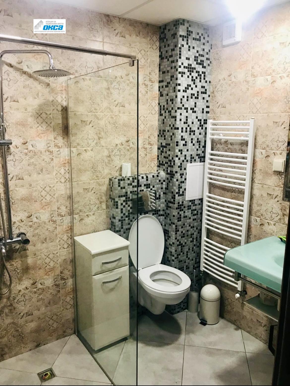 Оферта 2037 - Агенция за недвижими имоти ' ОКСА ' предлага двустаен апартамент ново строителство. Състои се от голяма дневна с кухня, спалня, коридор, баня с тоалетна, тераса. Жилището е обзаведено с всички мебели , ел. уреди и климатици. Газ. Асансьор. В близост са магазини, училища, спирки.