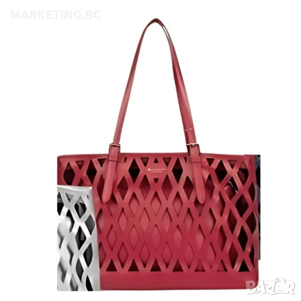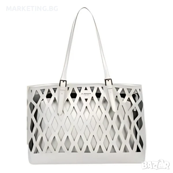Комплект: Външна чанта с отворен решетъчен дизайн + вътрешна чанта с цип;