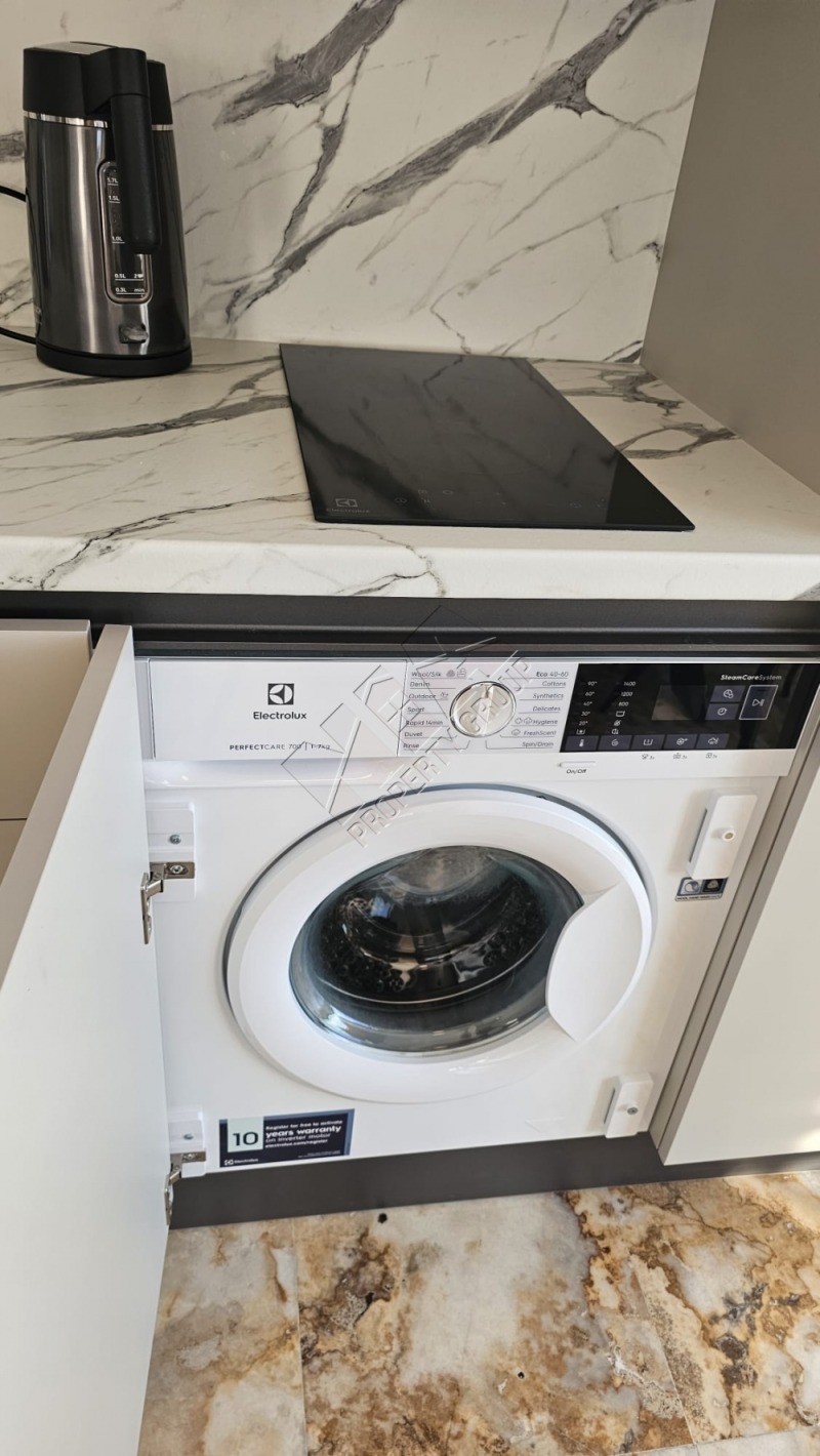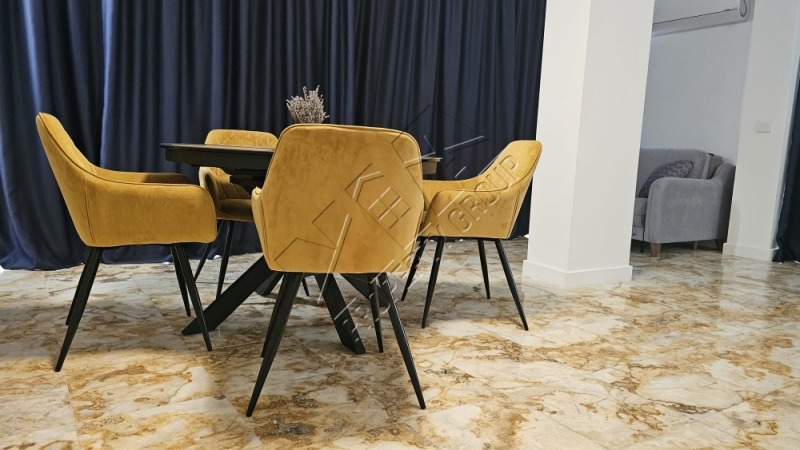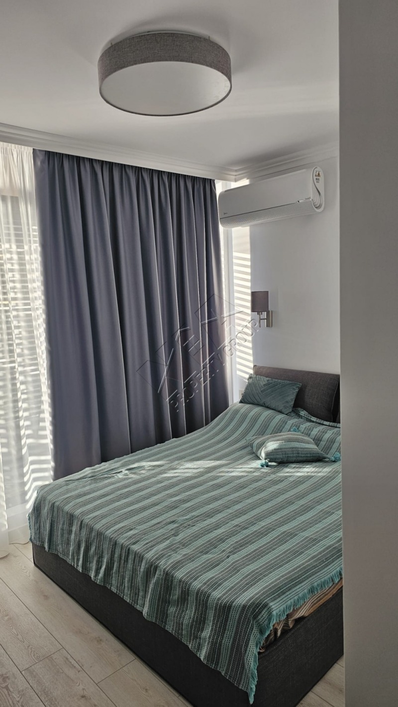 Състои се от просторна дневна с кухня и зона за хранене, самостоятелна спалня, две бани/ душ и вана/ с тоалетна, тераса с панорамна гледка. Предлага се с обзавеждането : нови и удобни мебели, бяла техника и уреди. Подът е от оникс с подово отопление.