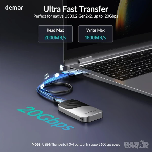 Този преносим SSD диск осигурява ултрабързи скорости на трансфер от 20 Gbps за плавна работа с файлове без забавяне, идеален за взискателни задачи като редактиране на видео и дизайнерска работа. Неговият първокласен корпус от цинкова сплав съчетава елегантна естетика с издръжливост, а компактният и лек дизайн включва вграден контур за лесно пренасяне. Удароустойчивата конструкция защитава данните в движение, а широката съвместимост с Windows, Mac и Linux осигурява безпроблемна употреба на различни устройства.