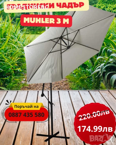 ✨ Градински чадър MUHLER 3 м – стил и защита за вашето външно пространство!