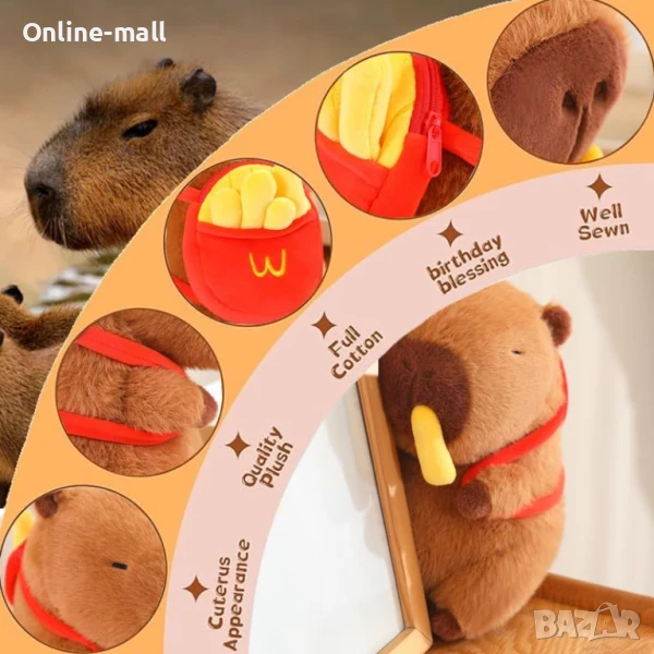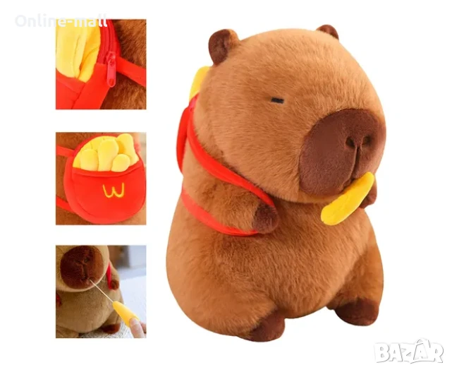 Плюшена играчка Капибара с раничка Mc Donalds и пържени картофки 30 см → Обява 50470227
