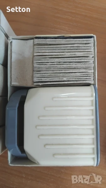 Запазен диаскоп с оригиналната си кутия + 5бр кутии с диапозитиви. Тематиката се вижда на снимките.