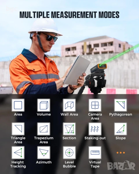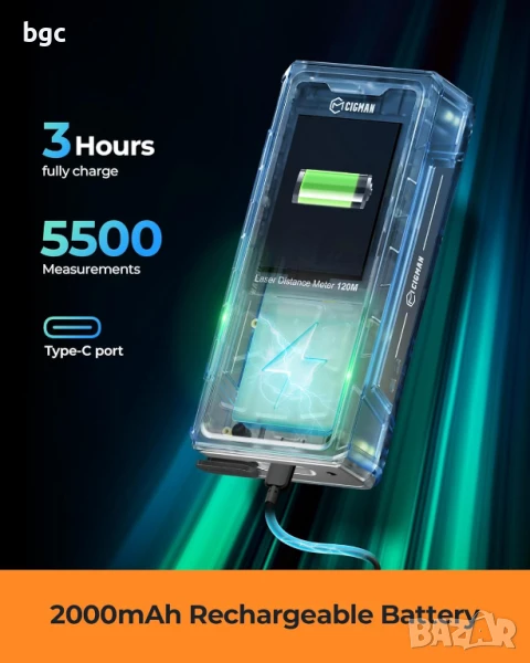 максимум 120 метра на открито, осигурявайки точност до +/-2 мм; той е