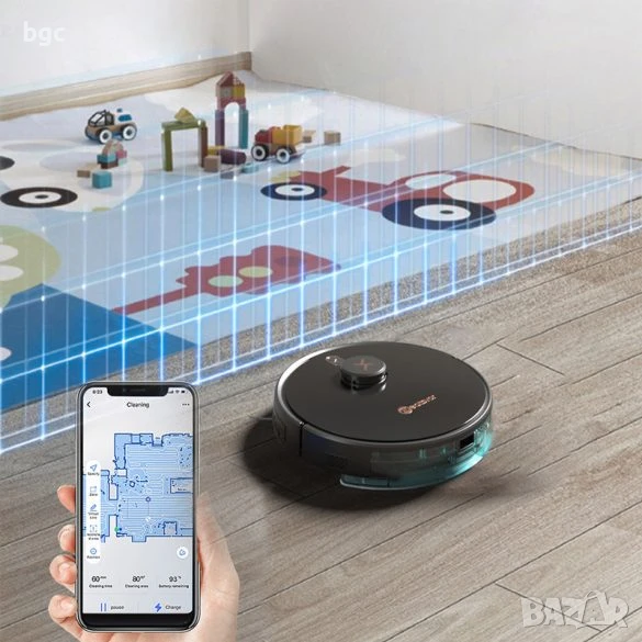 ● Оборудван с най-интелигентната лазерна навигационна система, изключително бързо проучване на стаята, интелигентно планиране на маршрут.