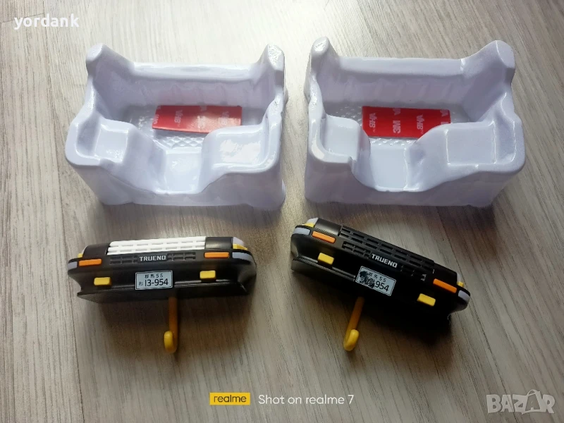 Поставка за ключове под формата на предница на Toyota AE86 със светещи фарове. Фаровете изгасват автоматично 10 секунди след поставяне на ключовете на куката. Разполагам с два цвята- бял и черен. В комплект с двойно лепяща лента и кутия. За повече бройки-отстъпка от цената.