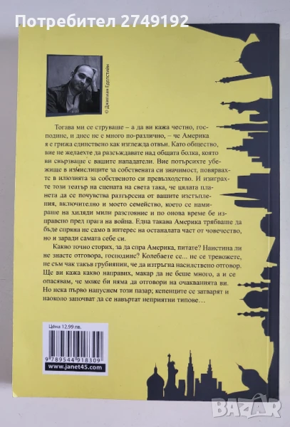 Тогава ми се струваше – а да ви кажа честно, господине, и днес не е много по-различно, – че Америка я е грижа единствено как изглежда отвън. Като общество, вие не желаехте да разсъждавате над общата болка, която ви свързваше с вашите нападатели. Вие потърсихте убежище в измислиците за собствената си значимост, повярвахте в илюзията за собственото си превъзходство. И изиграхте този театър на сцената на света така, че цялата планета да се почувства разтърсена от вашитe изстъпления, включително и моето семейство, което се намираше на хиляди мили разстояние и по онова време бе изправено пред прага на война. Една такава Америка трябваше да бъде спряна не само в интерес на останалата част от човечество, но и заради самата себе си.