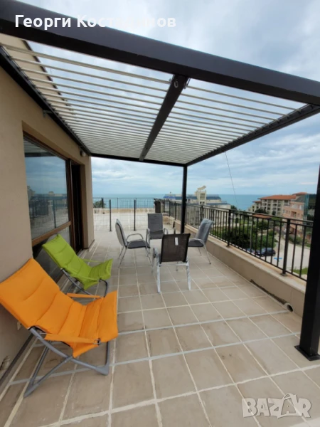 Продава се едностаен апартамент в гр. Бяла-112 кв.м , състоящ се от 36 кв.м застроена площ , която включва всекидневна, кухня, баня-тоалет, коридор и просторна тераса от 65 кв.м - с монтирана слънцезащитна Пергола , на която може да се насладите през горещите летни дни и има уникална панорамна морска гледка. Жилището се намира на 150 метра от плажа или 3 минути пеш , в тиха и спокойна среда в близост до центъра на града и всички удобства необходими за живеене целогодишно. Апартаментът е в отлично поддържана сграда, с 12.00лв месечна такса поддръжка. От голямата тераса се открива изключителна гледка, както към морето така и към града и околностите. В жилището никога не е живяно, преди 2 месеца му е направен ремонт и дизайнерско обзавеждане- всички електроуреди, чисто нови дивани и мебели неизползвани до момента и са в гаранционни срокове, разполага с хладилник, фурна за готвене, кварцови котлони, аспиратор, LED телевизор, климатик. Тъй като апартаментът е едностаен дизайнерът предложи функционална падаща спалня, която да се вписва в интериора. До 20 дни апартаментът ще бъде приключен с цялото ново обзавеждане. При интерес от ваша страна моля обадете се предварително, тъй като живеем на 150 км от гр. Бяла, тел.: 0896161416