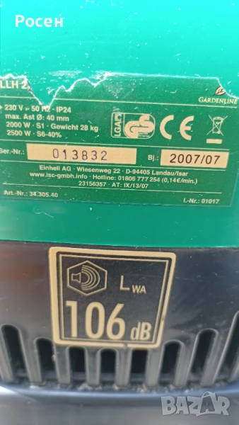 Продавам дробилка за клони Gardenline с вал,самопридърпваща,с кош,с две посоки на въртене.Внос от Германия.