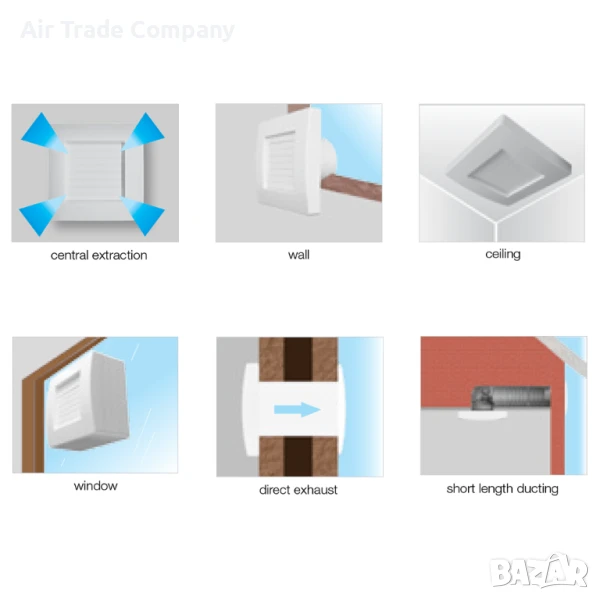 Стандартна – вентилаторът се управлява чрез отделен ключ Вкл./Изкл. или ключ за осветление.