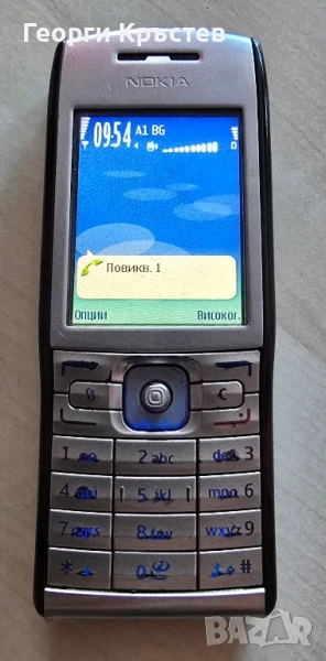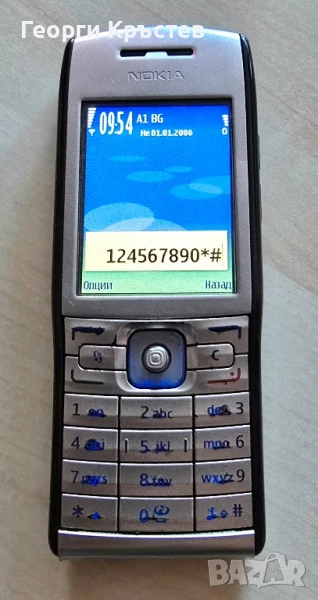 E50 - телефона се включва и работи, тестван с А1, нямам друга за проба, зарежда си батерията, дисплея някак жълтенее, слушалката НЕ работи, не чувате, микрофона е ОК, камера и подсветка също са ОК, има БГ меню, джойстик"нагоре", "червена слушалка" и цифра"3" НЕ работят, веднъж ми поиска код на телефона, който не знам, но след повторно пускане, не го искаше вече, нямам идея защо, долу металното под клавиатурата е разлепено, трябва да се залепи, без батерия, заден капак и зарядно.