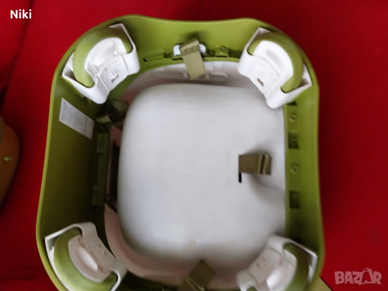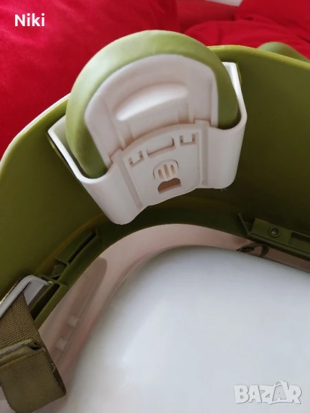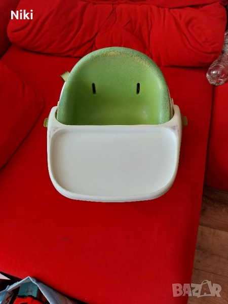 Столче за хранене на Mamas and Papas. Удобно за закрепване на голям стол. Има мека част която се сваля и масичка която се заключва да не падне детето. Използвано.