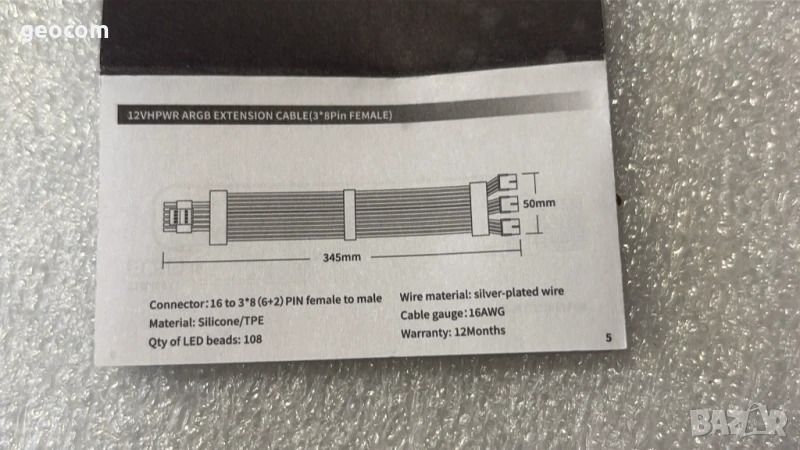 ARGB PSU-VGA кабел PCI-Ex 5.0 600W ATX 3.0 (90 градусов)