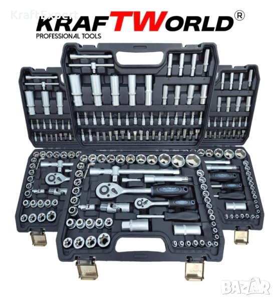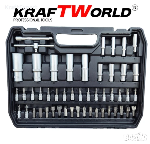 Хром-ванадиева стомана за максимална издръжливостЗдрав и удобен куфар с метални закопчалки за сигурно съхранениеПълна гама инструменти за всяка задачаОткрийте ненадминатата здравина и прецизност на немското гедоре KraftWorld със 108 части – вашият верен помощник в работата!Този комплект предлага изключителна устойчивост и дълъг живот, благодарение на висококачествената хром-ванадиева стомана (Cr-V), която гарантира, че всяка част е изработена с внимание към детайла. Идеален както за професионалисти, така и за домашни майстори, той ще се справи с всяко предизвикателство. А сега се възползвайте от промоционалната цена и направете разумна инвестиция за дълготрайна употреба!Специални метални закопчалки на куфара осигуряват допълнителна сигурност и удобство при съхранение и транспортиране, така че всичко да бъде под ръка и добре организирано.Защо да изберете KraftWorld?? Хром-ванадиева стомана за максимална издръжливост? Здрав и удобен куфар с метални закопчалки за сигурно съхранение? Пълна гама инструменти за всяка задача? Промоционална ценаКомплектът съдържа:Тресчотка 1/2”Тресчотка 1/4”2 броя удължители 1/2”: 125мм и 250мм2 броя удължители 1/4”: 50мм и 75ммВърток 1/4” 150ммВърток 1/4” Т образен 100ммПодвижна свръзка / кардан за гедоре 1/4”Подвижна свръзка / кардан за гедоре 1/2”Комбиниран адаптер 3/8” – 1/2”Вложка за накрайници 1/2”13 броя вложки 1/4” къси: 4мм; 4.5мм; 5мм; 5.5мм; 6мм; 7мм; 8мм; 9мм; 10мм; 11мм; 12мм; 13мм; 14мм8 броя вложки 1/4” дълги: 6мм; 7мм; 8мм; 9мм; 10мм; 11мм; 12мм; 13мм5 броя вложки е-торкс / е- torx (женски торкс) 1/4”: E4; E5; E6; E7; E84 броя вложки кръстата отвертка 1/4”: PH1; PH2; PZ1; PZ23 броя вложки плоска отвертка 1/4”: 4мм; 5.5мм; 6.5мм7 броя вложки торкс / torx 1/4”: Т8; Т10; Т15; Т20; Т25; Т27; Т304 вложки шестограм 1/4”: 3мм; 4мм; 5мм; 6мм17 броя вложки 1/2” къси: 10мм; 11мм; 12мм; 13мм; 14мм; 15мм; 16мм; 17мм; 18мм; 19мм; 20мм; 21мм; 22мм; 24мм; 27мм; 30мм; 32мм5 броя вложки 1/2” дълги: 14мм; 15мм; 17мм; 19мм; 22мм8 броя вложки е-торкс / е- torx (женски торкс) 1/2”: E10; E11; E12; E14; E16; E18; E20; E242 броя вложки за свещи 1/2”: 16.0мм и 21.0мм4 броя накрайници кръстата отвертка: PH3; PH4; PZ3; PZ43 броя накрайници плоска отвертка: 8мм; 10мм; 12мм5 броя накрайници шестограм: 7мм; 8мм; 10мм; 12мм; 14мм5 броя накрайници торкс / torx: Т40; Т45; Т50; Т55; T603 броя Г образни шестограми: 1.5мм; 2мм; 2.5ммПоръчайте своя комплект KraftWorld и се насладете на мощ и прецизност, с която всяка задача ще бъде удоволствие!