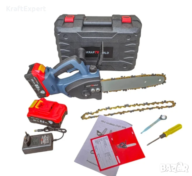 Акумулаторен Трион KraftWorld 36V 8Ah + 2 Вериги – Мощност, Лекота и Прецизност!