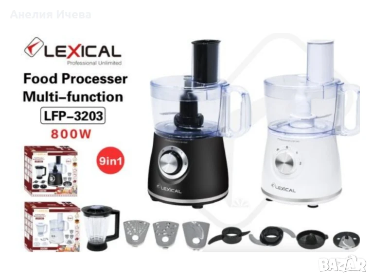 Мощност: 800WОбем на купата за рязане: 1,2 литраОбем на купата на блендера: 1,75 литраБрой скорости: 2Импулсен режимЗахранване: Мрежа 220V ~ 50HzФункции: Блендер, сокоизстисквачка за цитрусови плодове, мини чопър, ренде, шредер;24 месеца гаранция.