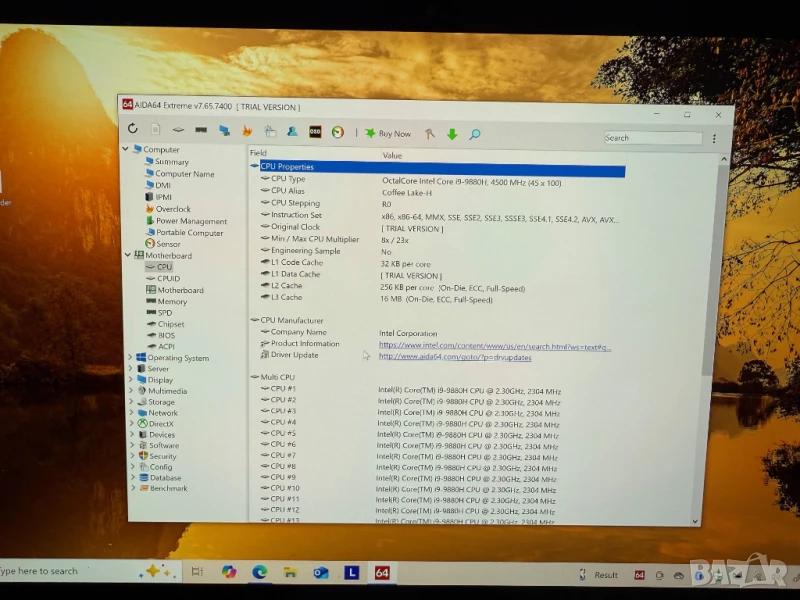 Процесор: I9-9880H Осем ядрен i9 2.3Ghz с boost 4.8Ghz, 16Mb Cache Intel UHD 630