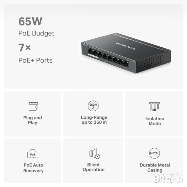Комутатор Mercusys Switch 8 Port PoE+ MS108GP → Обява 50475164