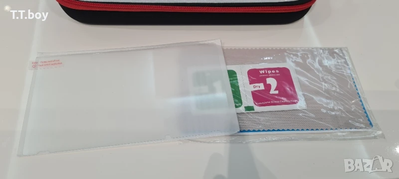 В комплект с чантата получавате протектор за гърба на конзолата, протектори за joycon, протекторни гъбки, протектор твърд за дисплея, поставка за конзолата и кърпичка за почистване на дисплея за по-добро монтиране на протектора.