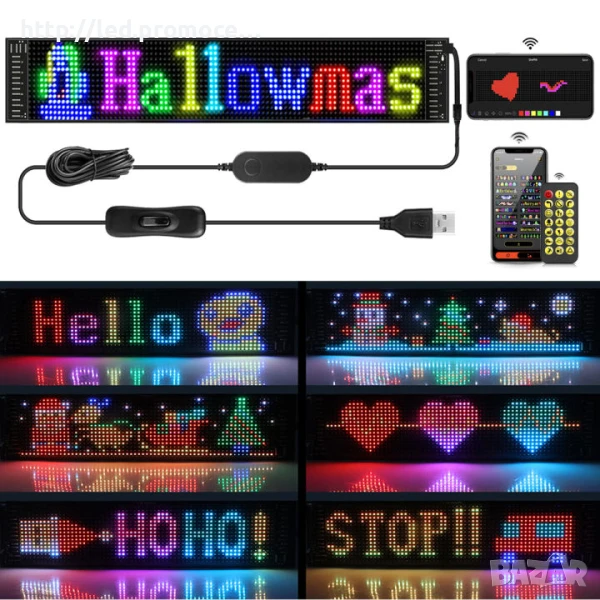 12*59.5 см скролиращ LED дисплей с матричен панел, черен, USB зареждане