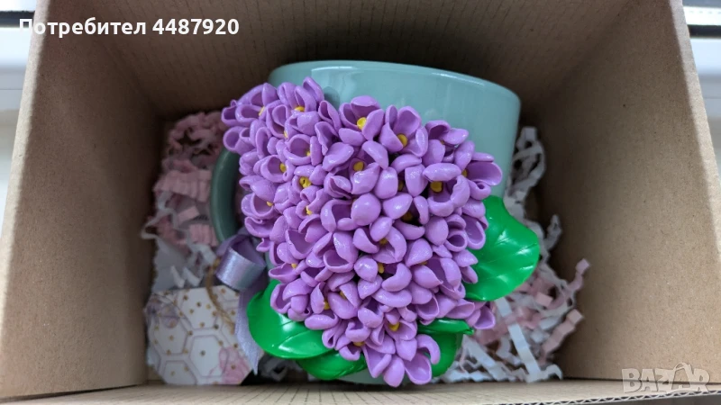 Предлагам на вашето внимание чаша декорирана с полимерна глина. Продавам я с кутията от снимката. Идеална за подарък.