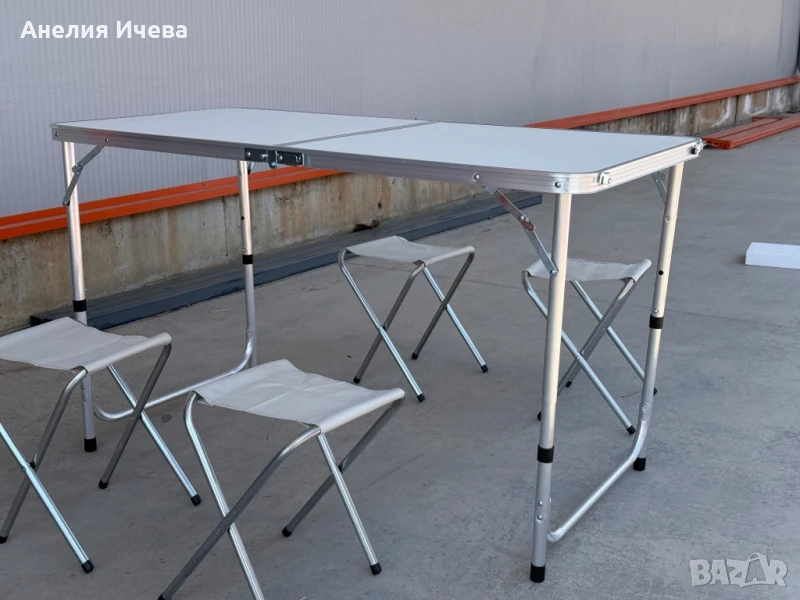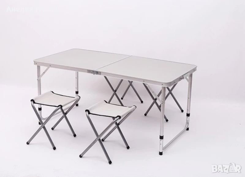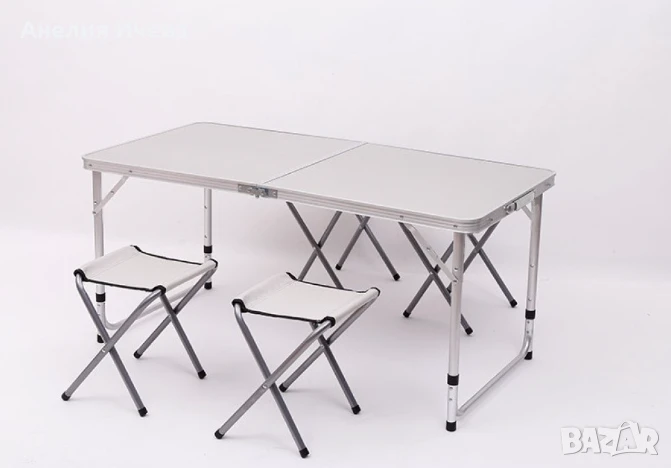 Комплект Сгъваема Маса и Столове Malatec 7893, 4 Стола, Алуминиев Материал, Сгъваема, 120 x 60 x 55 cm / ТОП ЦЕНА!!! / Отивате на почивка или на къмпинг, пикник сред природата. Цвят: Според наличността на склада. БЕЗ дупка за чадър