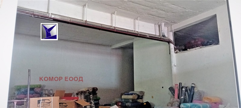 Вътрешно склада е разделен на просторно преддверие с офисна част към лицето на сградата / обзаведен, но по желание може да се разчисти/ представляващ две преходни помещения и склад - архив, санитарен възел и мивка с възможност за преграждане на малка кухничка към офисната част; с висок и широк PVC портал е отделена складова част състояща се от високо и просторно складово помещение с приток на естествена светлина, с полуетажи удобни за допълнително складиране, топла връзка към кухничката и магазина, няколко помещения също подходящи за допълнителни офиси, като едното е с втори изход на гърба на сградата към малък озеленен двор / удобно за пиене на кафе, зона за пушачи и други.