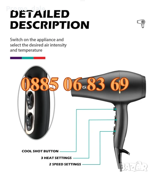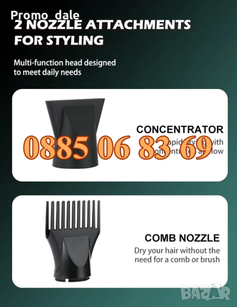 Oборудвани с две първокласни дюзи, а лекият дизайн прави пълното ви моделиране в салона у дома без усилие, отговаряйки на изискванията за всички прически: тънки, гъсти, къдрава и права