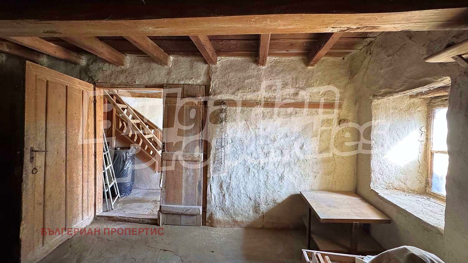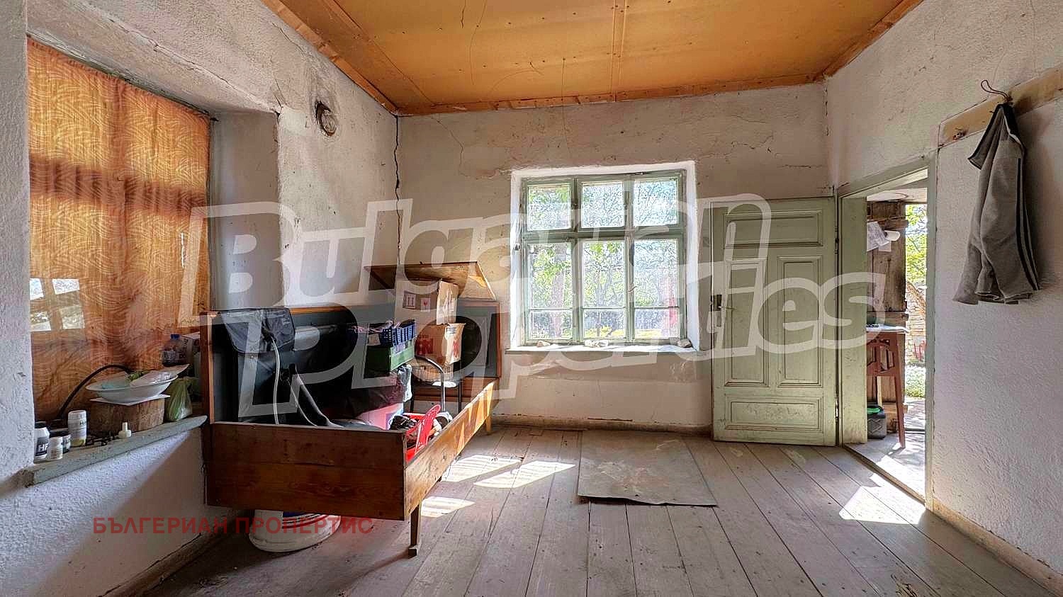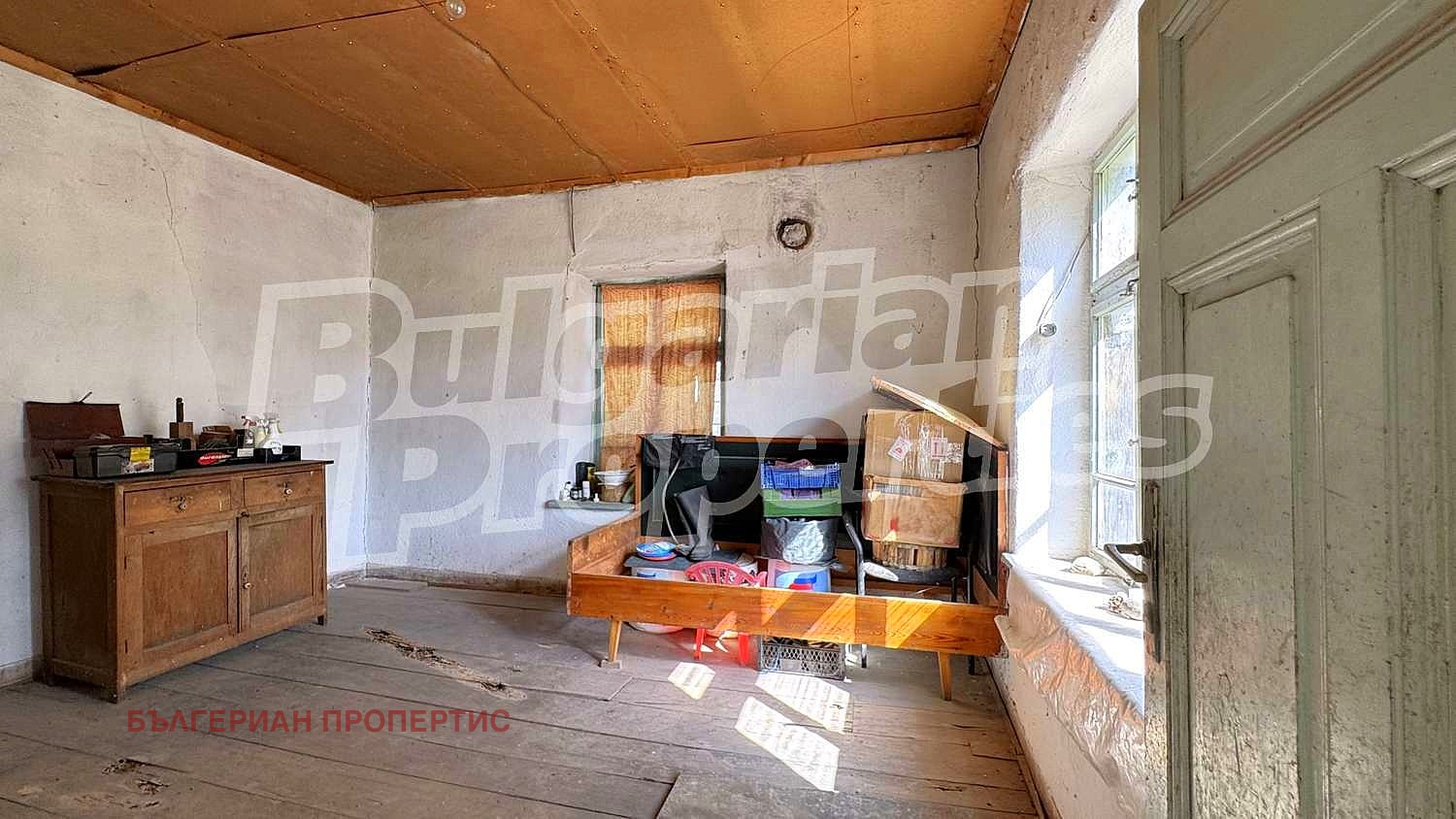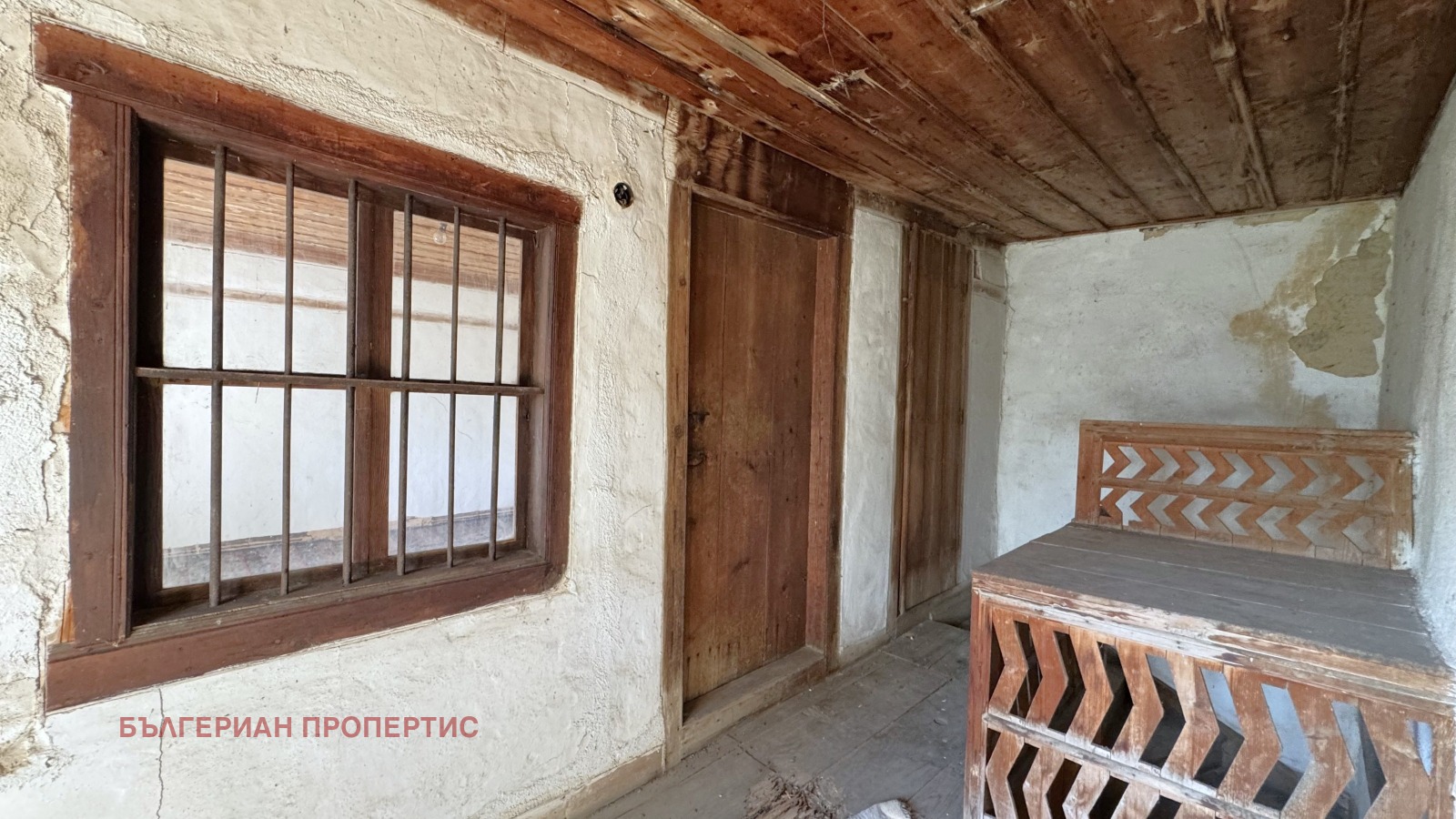 Прозорците са с дървена дограма, стени - камък, подовете на замазка и дюшеме.