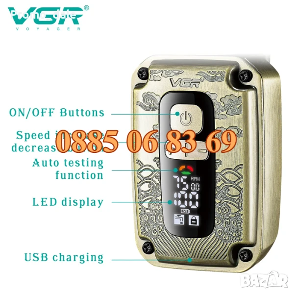 Самобръсначката VGR V-337 е изработена в сравнително компактен корпус за преносимост и удобство. Компактният размер прави самобръсначката идеална за пътуване или бизнес пътувания, като ви гарантира, че можете да поддържате безупречния си външен вид. Лекият дизайн и металният корпус правят модела практичен и удобен за употреба. Удобната дръжка осигурява лесно маневриране по време на бръснене. Трябва да се отбележи, че моделът е оборудван с тример за бакенбарди. Тази приставка ви позволява прецизно да подстригвате и оформяте бакенбарди и друго лицево окосмяване, осигурявайки цялостно решение за подстригване в едно устройство.