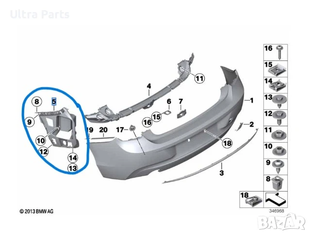 Оригинален заден денсен водач на бронята за BMW F22 F23 7285534 → Обява 50480879