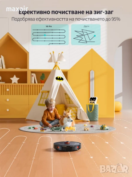 V8 Pro поддържа създаването и съхранението на до 5 карти, което я прави идеална за многоетажни домове.