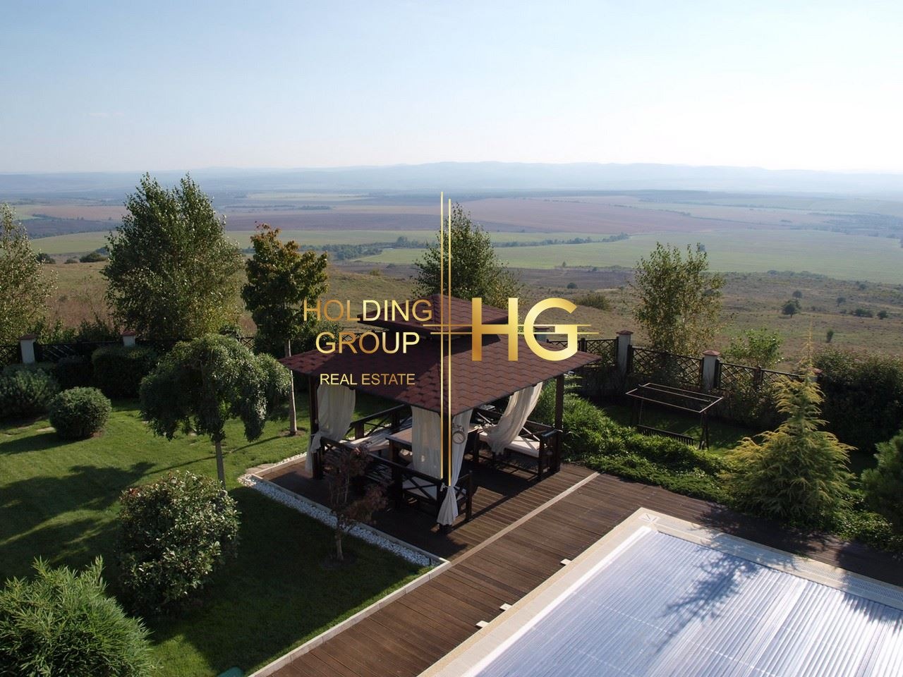 От имота се разкрива великолепна панорама към равнината с езера и планини, без сгради, които да пречат на панорамната гледка. Чист въздух, спокойствие и неприкосновеност.