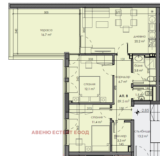 ДИРЕКТНО ОТ СТРОИТЕЛЯ, БЕЗ КОМИСИОННИ ОТ КУПУВАЧА. Нов проект, Тристаен апартамент в нова сграда. Разпределение: дневна с кухненски бокс, 2 спални, коридор, килер, баня с тоалетна, тоалет, тераса. В близост има автобусна спирка, паркова зона, училище, детски градини, магазини, болница. Отличната транспортна връзка ви позволява да стигнете до всяка точка на града. Обща площ на апартамента е 114,95 кв.м. Има различни схеми за плащане. Отделно можете да закупите паркомясто.