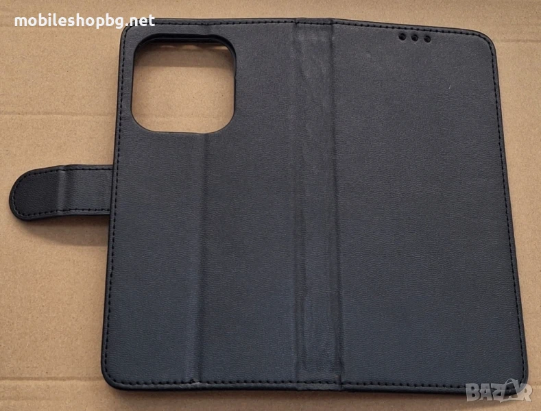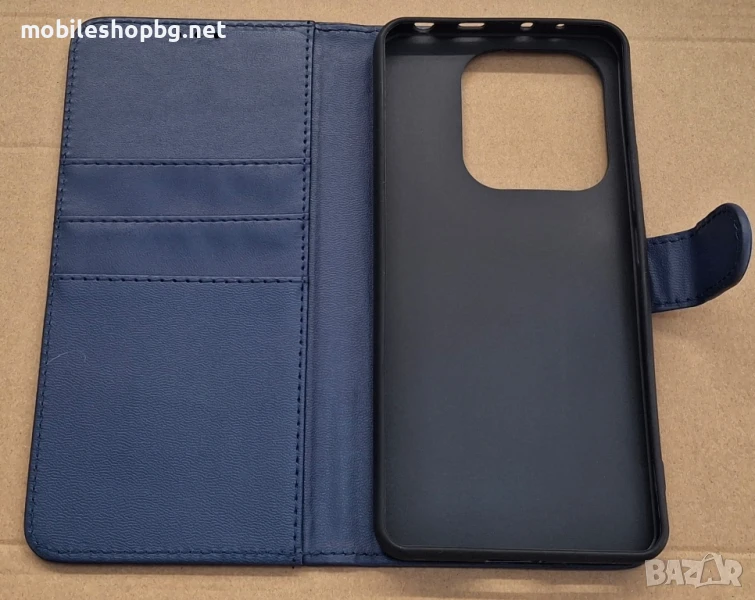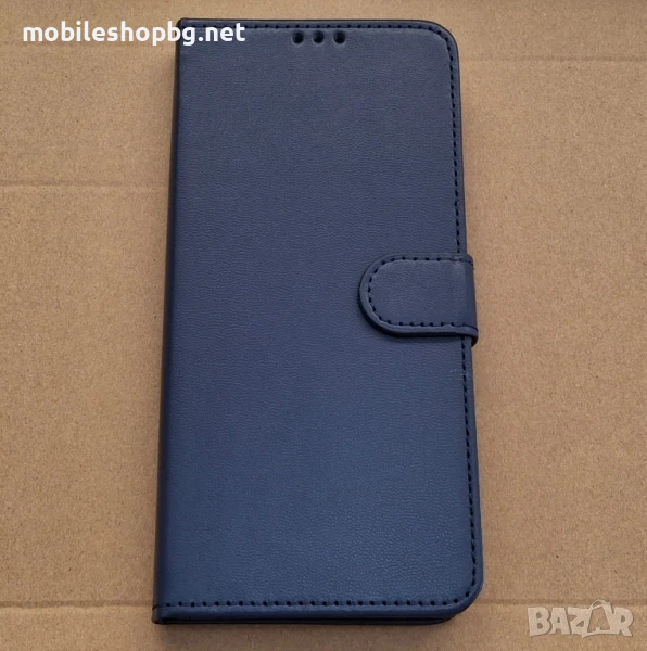 Redmi Note 14 4G калъф страничен с прегради и закопчаване черен син → Обява 50482344