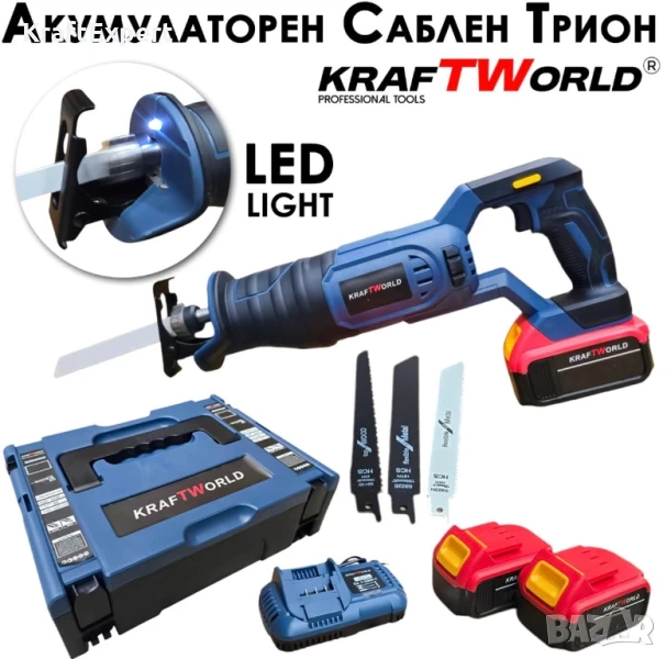 Професионален Акумулаторен Саблен Трион KraftWorld + 3 ножчета