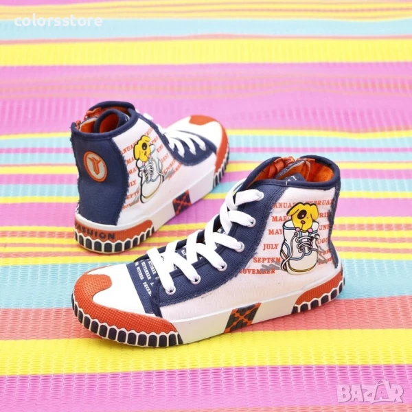 Детски кецове - бяло, синьо и оранжево - 3014