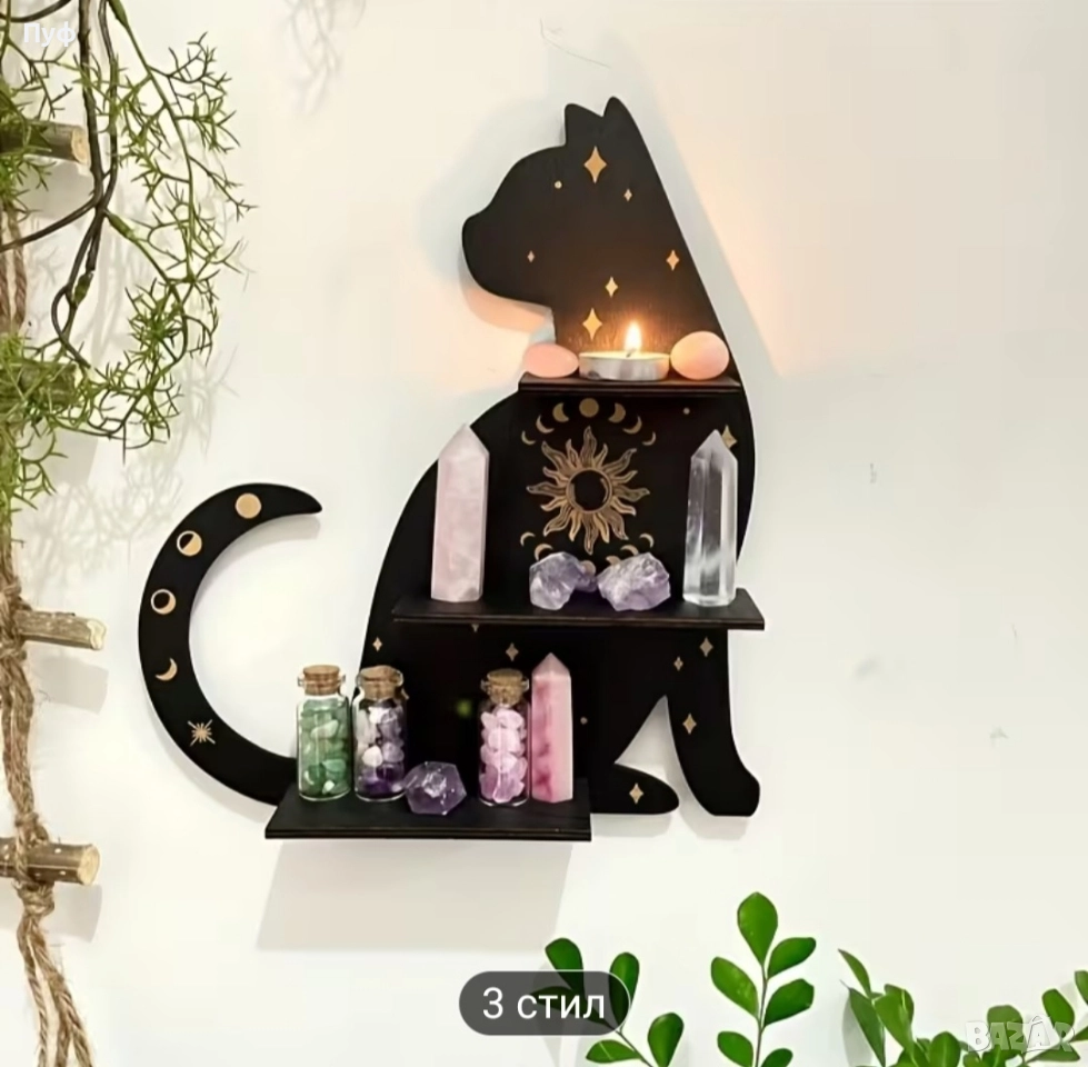 Елегантна черна котка стенна рамка - 3 стила, модерен дизайн с луна и изрезки, многосекционна свещник кристална рамка за декорация на всекидневна или спалня, тематична украса с котки (лесно сглобяема)